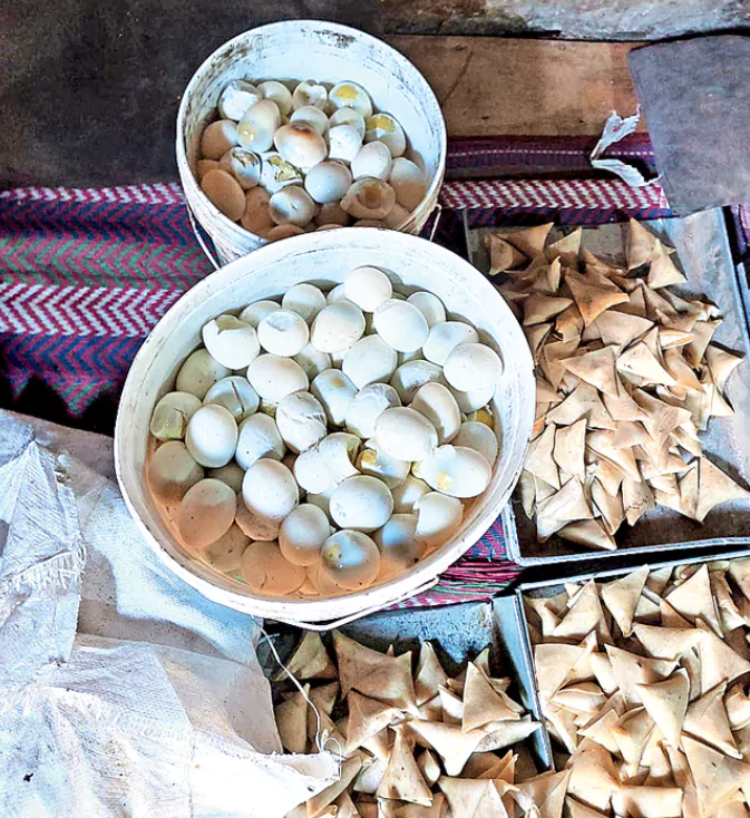 దాడి సమయంలో బయటపడిన విషయాలు మరింత షాక్కు గురిచేశాయి. సమోసాల తయారీలో కుళ్లిపోయిన కోడిగుడ్లు ఉపయోగిస్తున్నారని తేలింది. అలాగే పలుమార్లు వాడి నల్లగా మారిన కల్తీ నూనెను వంటకు వినియోగిస్తున్నారు. ఎక్స్పైరీ డేట్ దాటిన మైదా పిండి, పురుగులు పట్టిన పదార్థాలు కూడా నిల్వ ఉంచి వాడుతున్నారు. మార్కెట్లో పారేసిన కుళ్లిన కూరగాయలను తీసుకొచ్చి వాటితో మసాలా తయారు చేస్తున్నట్లు పోలీసులు గుర్తించారు.